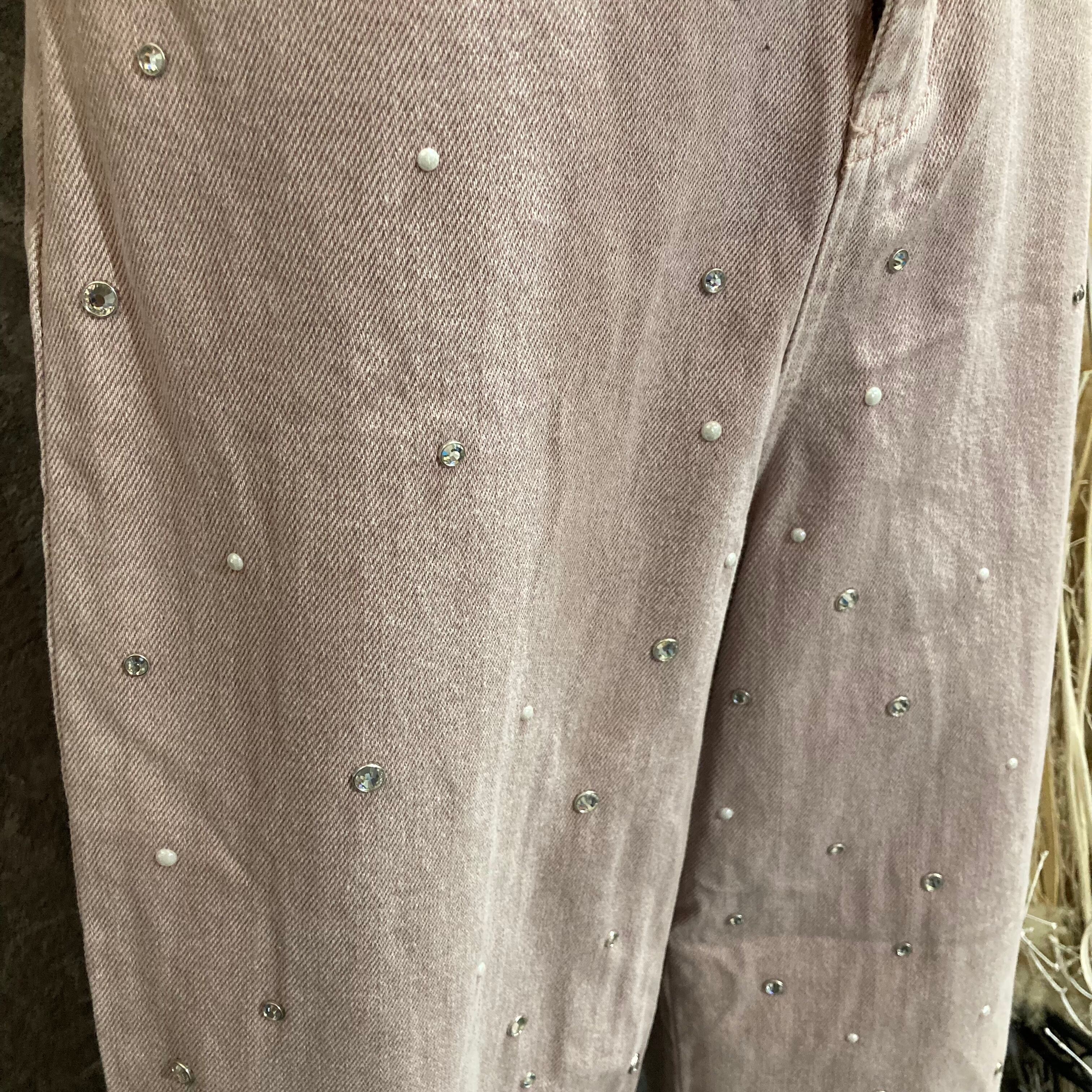 ビジュー付きデザインセミワイドパンツ¥2500